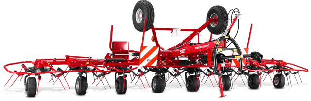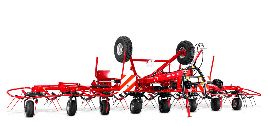 SIP SPIDER er solide og velutstyrte sprederiver. Jevn fortørking av graset og økt forkvalitet. Rotorer med liten diameter for optimal terrengtilpasning, tindearmer i rørprofil og med tindesikring. Finn sprederive