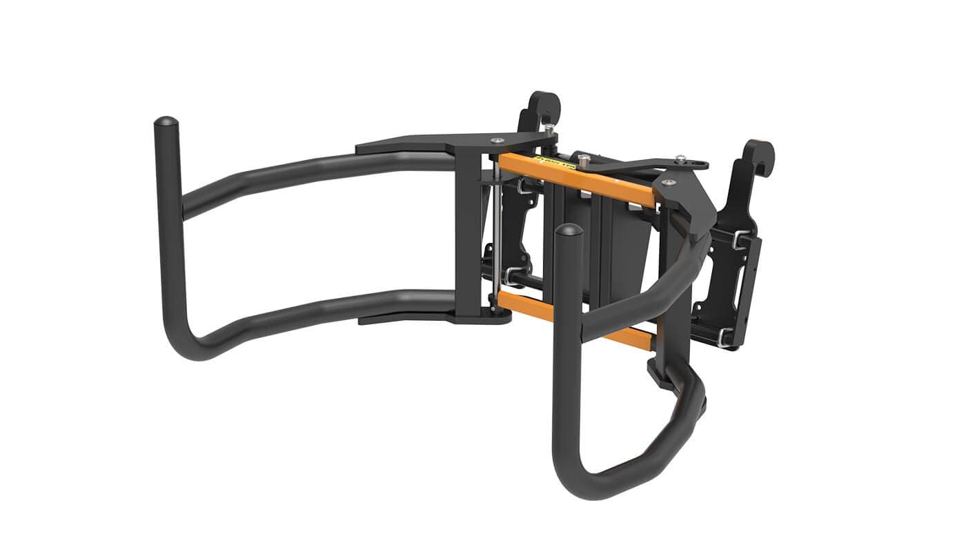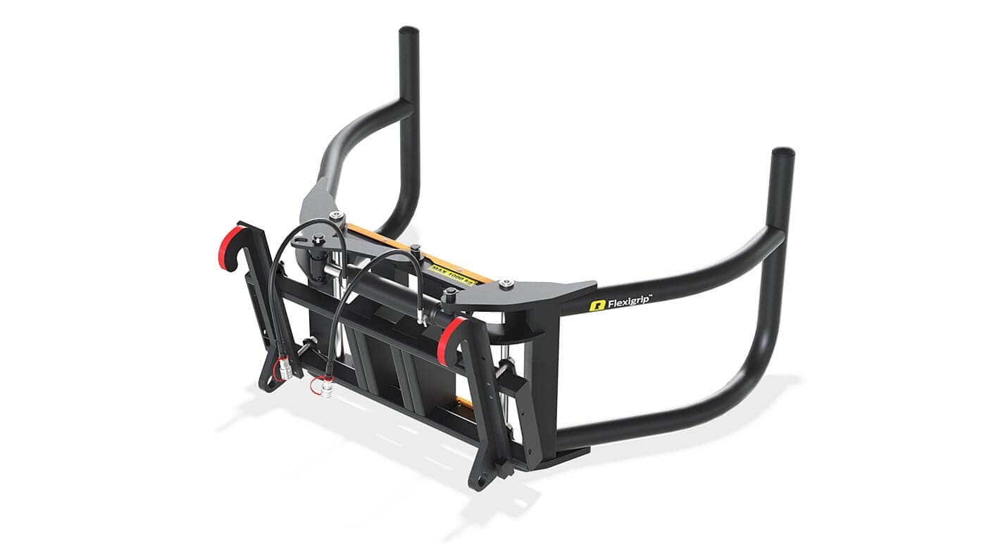 Gripearmene på Quicke Flexigrip er montert i kraftige dreiepunkter med utskiftbare foringer. Høyre eller venstre arm kan låses, men du har fortsatt litt bevegelighet, som gjør det mulig å stable ballene tett uten å skade balleplasten