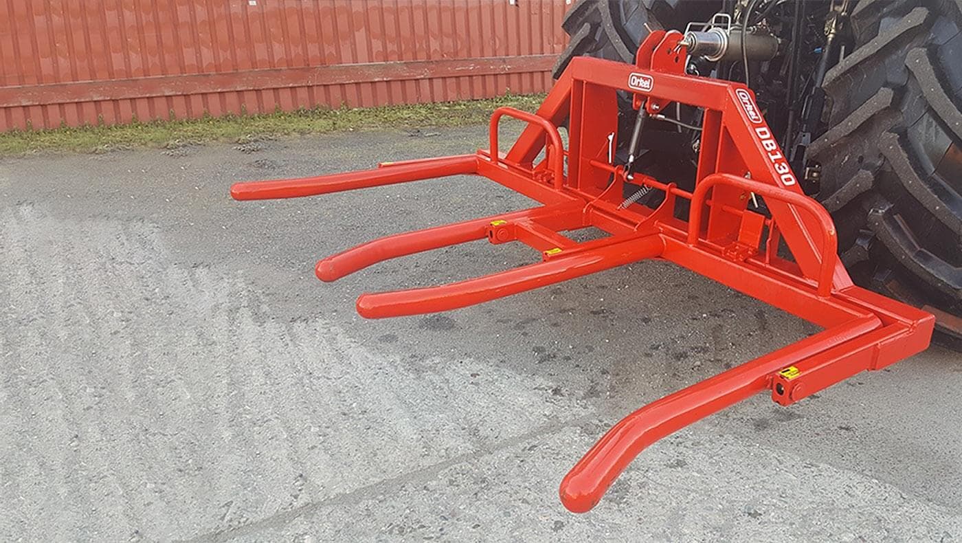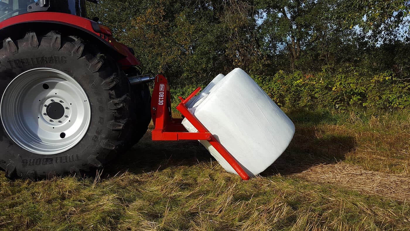 Orkel DB 130 rundballeløfter er enkel å manøvrere og har hydraulisk betjent tipplås. For ballediameter inntil 130 cm.
