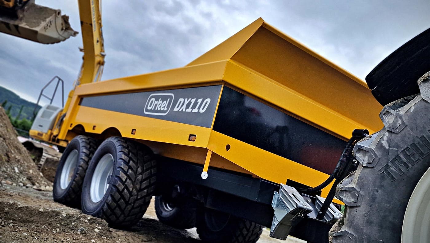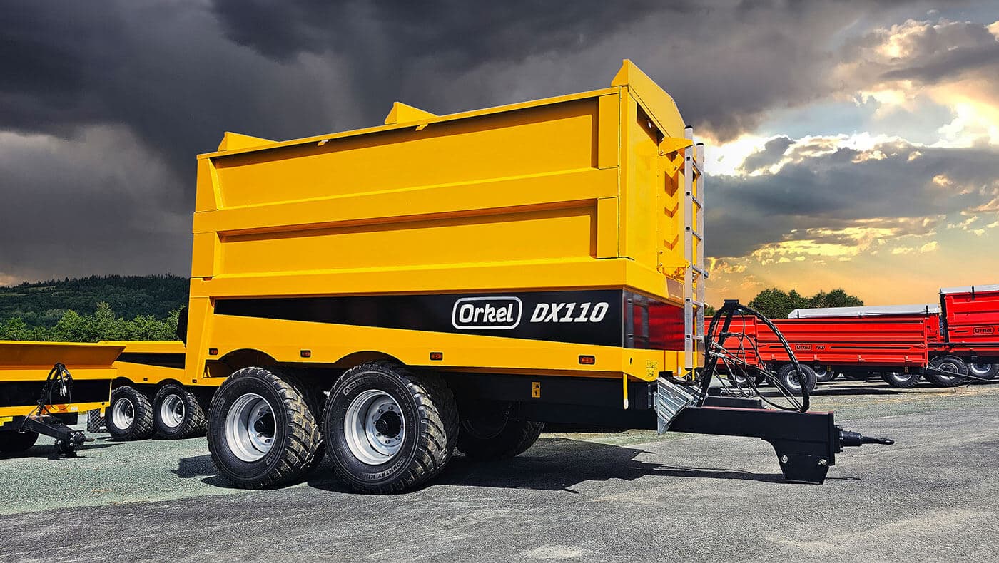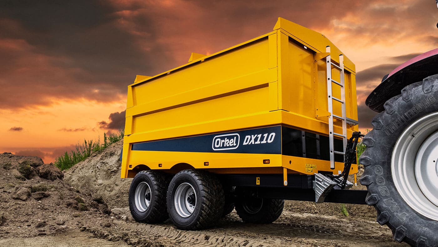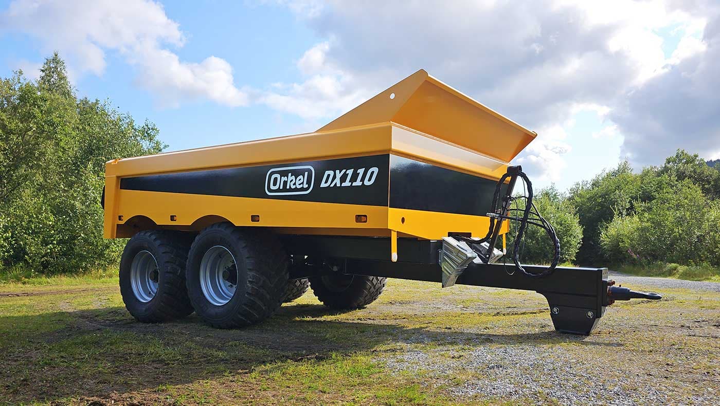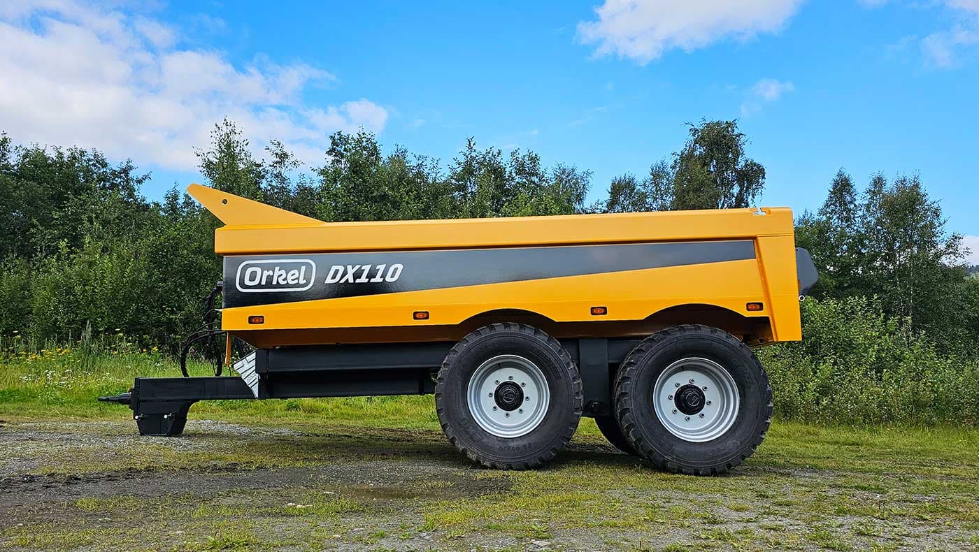Orkel DX110 er utviklet og konstruert for de tyngste transportoppgavene. Hengeren har kraftig H-ramme med solide boggikasser med forsterkede 8 bolters nav og utvendige bremsesylyndre. Hengeren leveres med hydraulisk bakluke og skvettkarm som standard. Dumperen DX110 vil med sin anvendelighet og solide konstruksjon være et naturlig valg for deg som driver anleggsvirksomhet. DX110 er bygget i 8mm Hardox 450 i bunn og 6mm Hardox 450 i sider, med en karmhøyde på 64cm. Tillatt totalvekt er 15 300 kg.