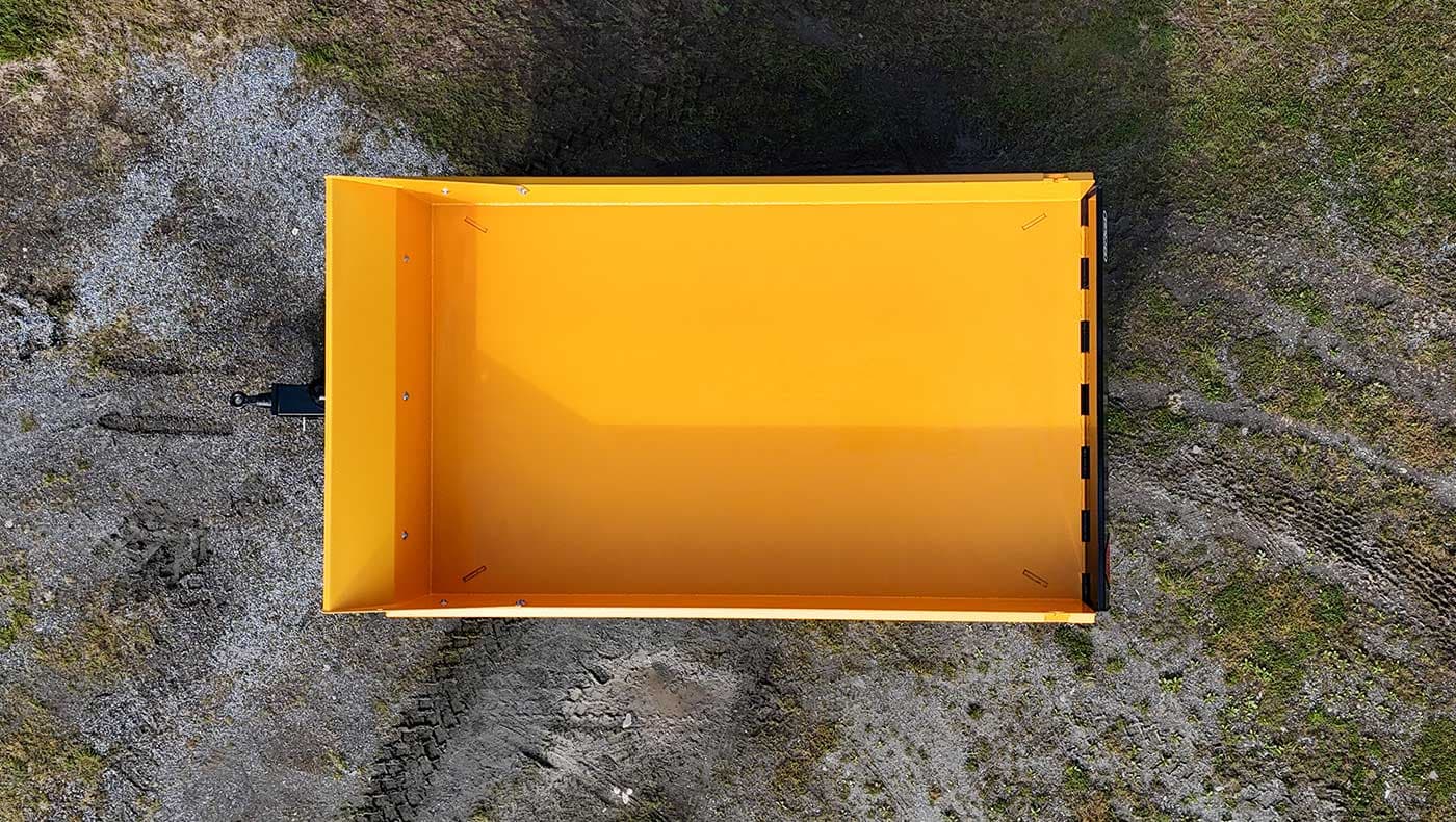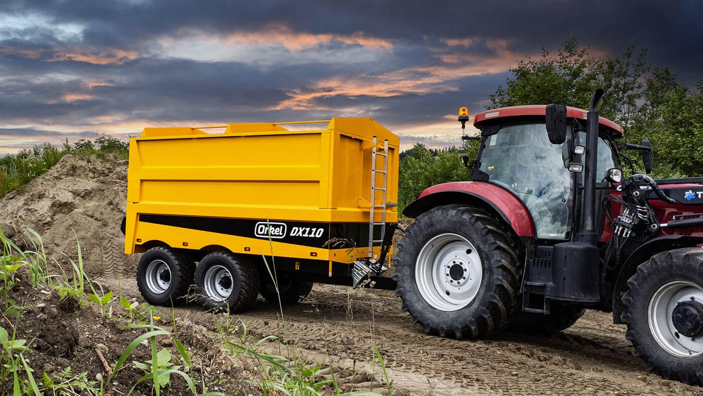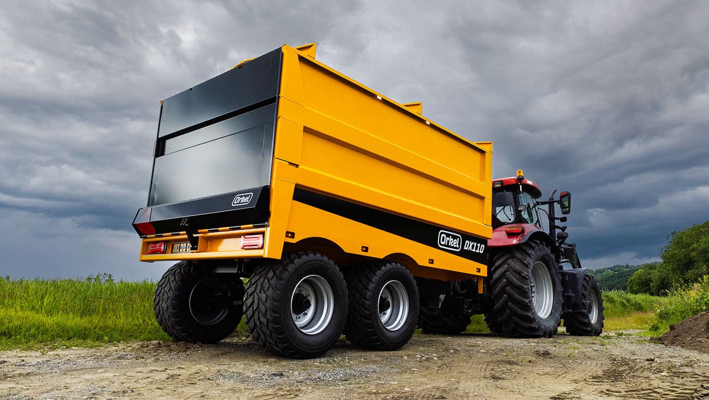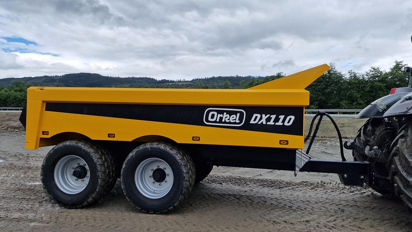 Orkel DX110 er utviklet og konstruert for de tyngste transportoppgavene. Hengeren har kraftig H-ramme med solide boggikasser med forsterkede 8 bolters nav og utvendige bremsesylyndre. Hengeren leveres med hydraulisk bakluke og skvettkarm som standard. Dumperen DX110 vil med sin anvendelighet og solide konstruksjon være et naturlig valg for deg som driver anleggsvirksomhet. DX110 er bygget i 8mm Hardox 450 i bunn og 6mm Hardox 450 i sider, med en karmhøyde på 64cm. Tillatt totalvekt er 15 300 kg.