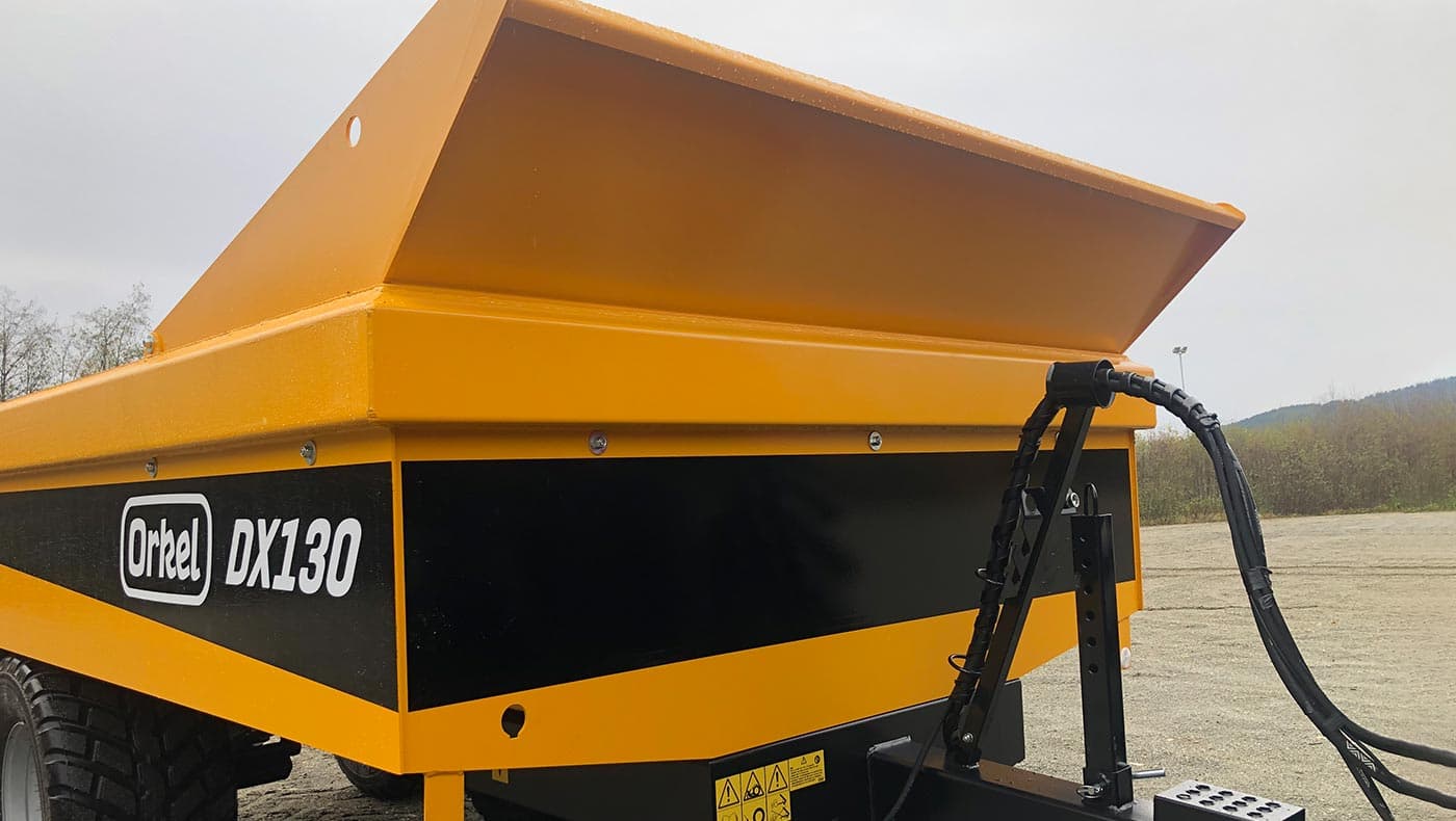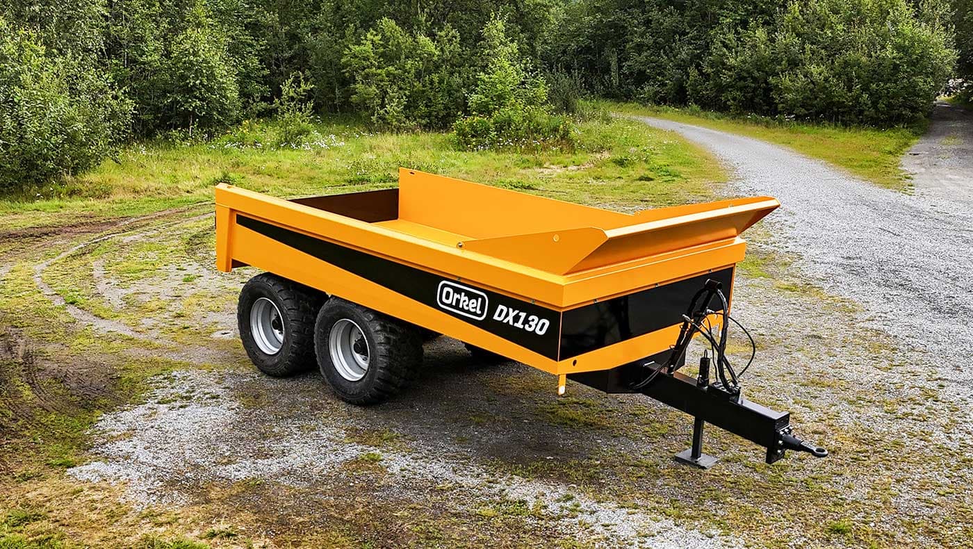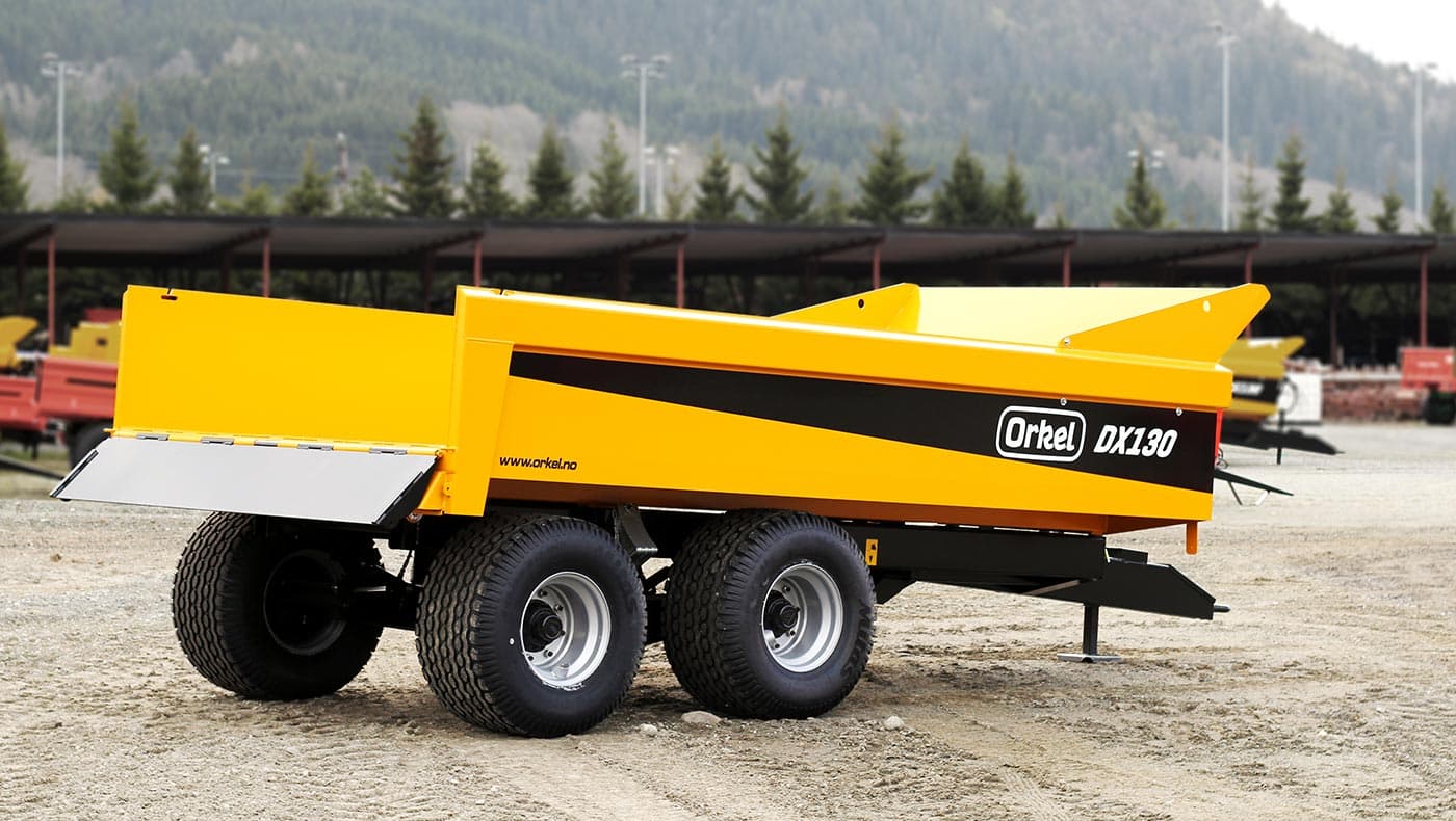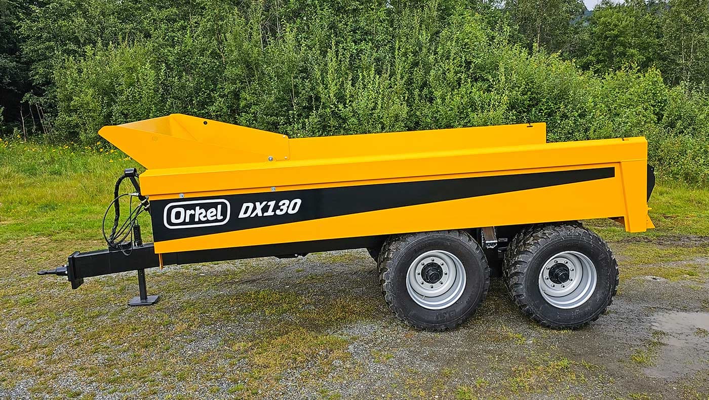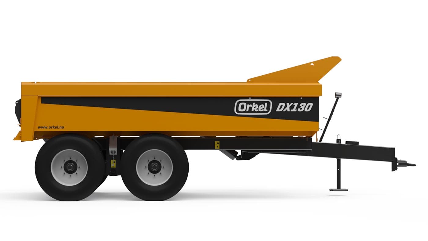 Orkel DX130 er utviklet og konstruert for de tyngste transportoppgavene. Hengeren har kraftig H-ramme med solide boggikasser med forsterkede nav og utvendige bremsesylindre. Hengeren leveres med hydraulisk bakluke og skvettkarm som standard. Dumperen DX130 vil med sin anvendelighet og solide konstruksjon være et naturlig valg for deg som driver anleggsvirksomhet. DX130 er bygget i 8mm Hardox 450 i bunn og 6mm Hardox 450 i sider, med en karmhøyde på 65 cm. Tillatt totalvekt er 17 000 kg.