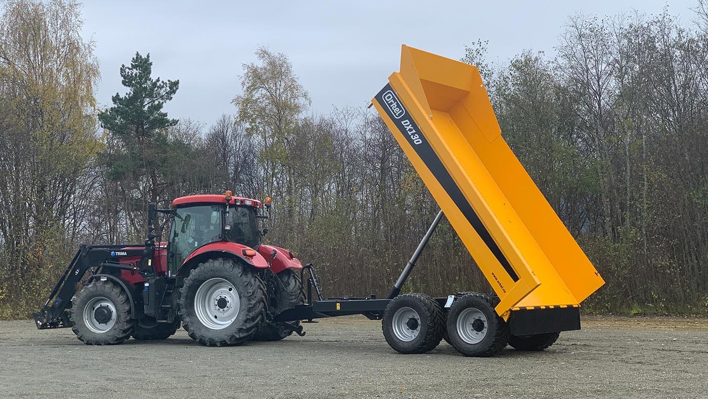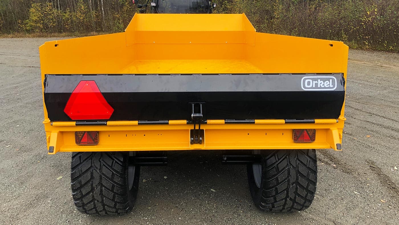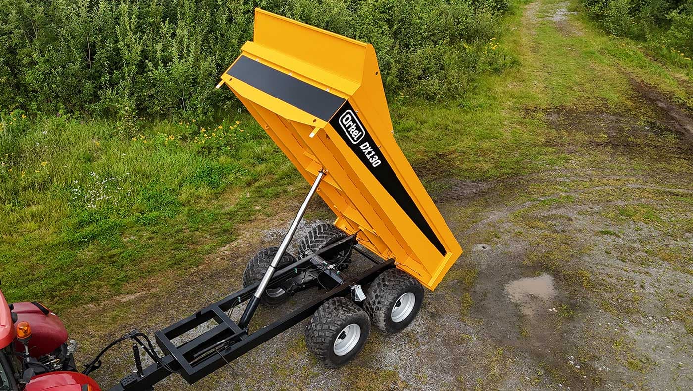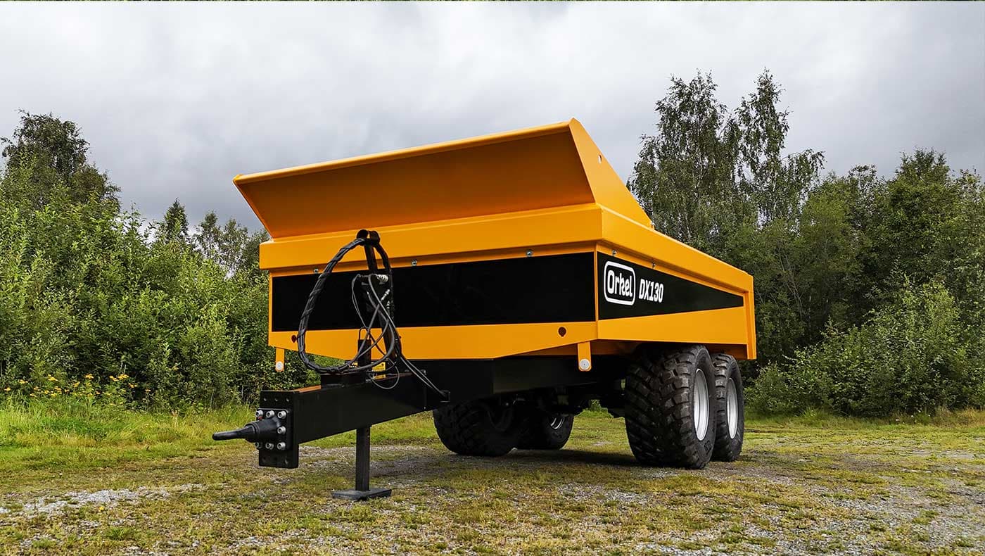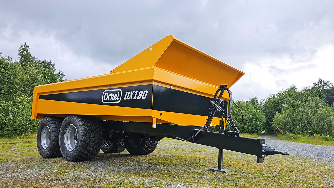 Orkel DX130 er utviklet og konstruert for de tyngste transportoppgavene. Hengeren har kraftig H-ramme med solide boggikasser med forsterkede nav og utvendige bremsesylindre. Hengeren leveres med hydraulisk bakluke og skvettkarm som standard. Dumperen DX130 vil med sin anvendelighet og solide konstruksjon være et naturlig valg for deg som driver anleggsvirksomhet. DX130 er bygget i 8mm Hardox 450 i bunn og 6mm Hardox 450 i sider, med en karmhøyde på 65 cm. Tillatt totalvekt er 17 000 kg.