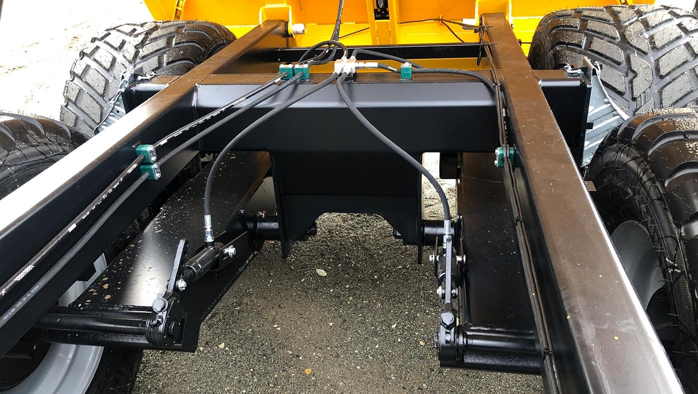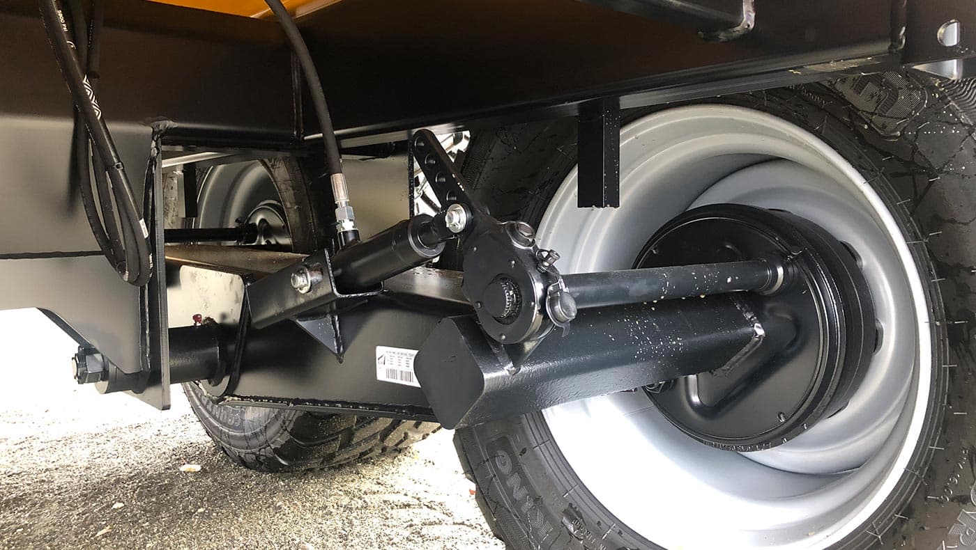 Proffhenger konstruert for de mest krevende oppgaver innen anlegg og transport av grovere masser. Dumperhengeren leveres standard med 560/45R22,5″ hjul, men kan også leveres med 500/50R17″ hjul.