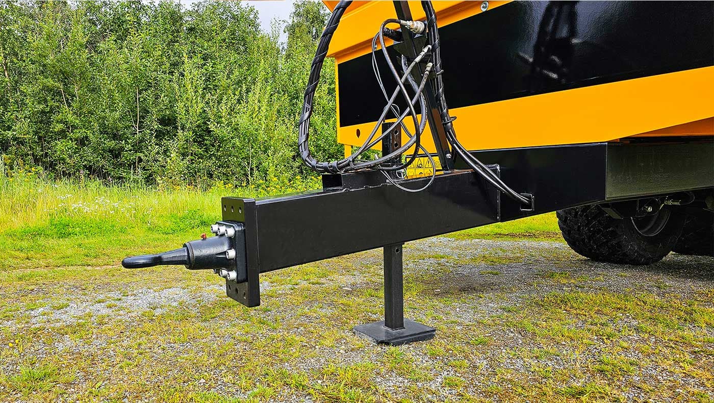 Vribart trekkøye, justerbar parkeringsfot, slangeholder på draget, led baklys, inn/utvendige surrekroker og hydraulisk bakluke.