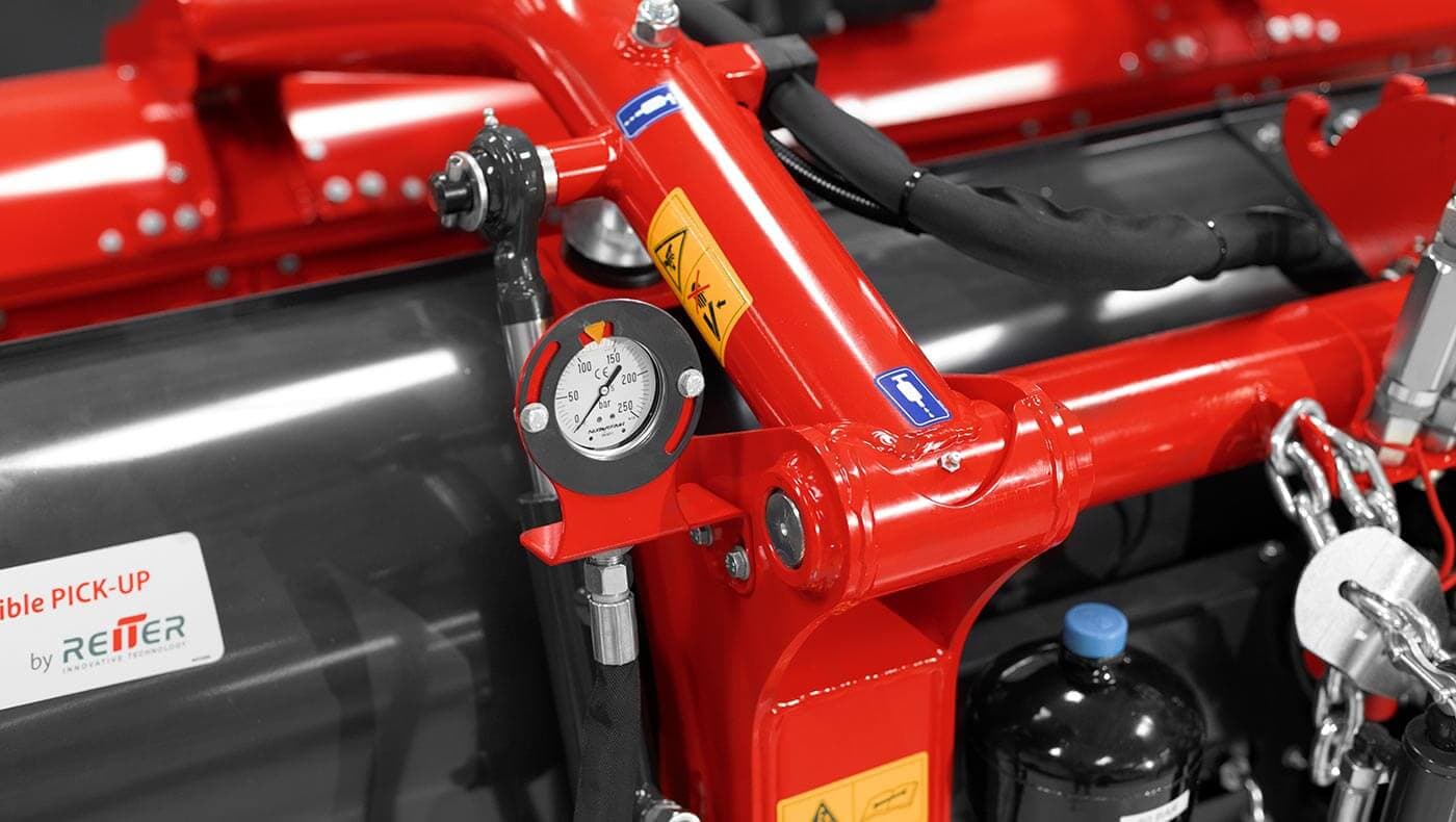 - – Hydraulisk vektavlastning av samme type som brukt på slåmaskiner, gjør at marktrykk kan tilpasses alle typer underlag og driftsforhold!.