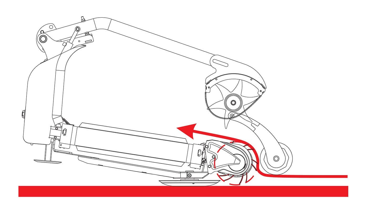 Sentral skårlevering og høy klaring mellom rammen og bakken resulterer i jevnt formede skår.