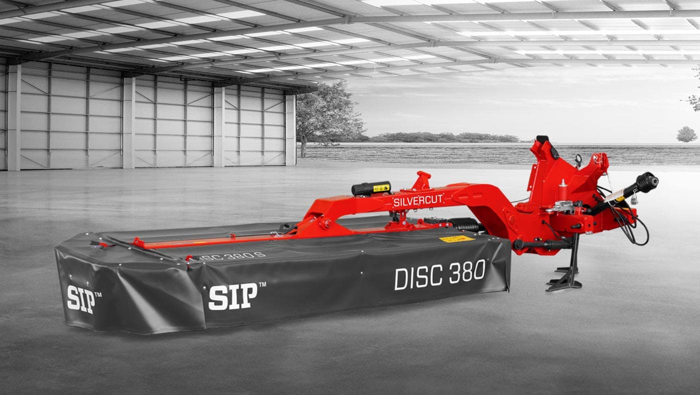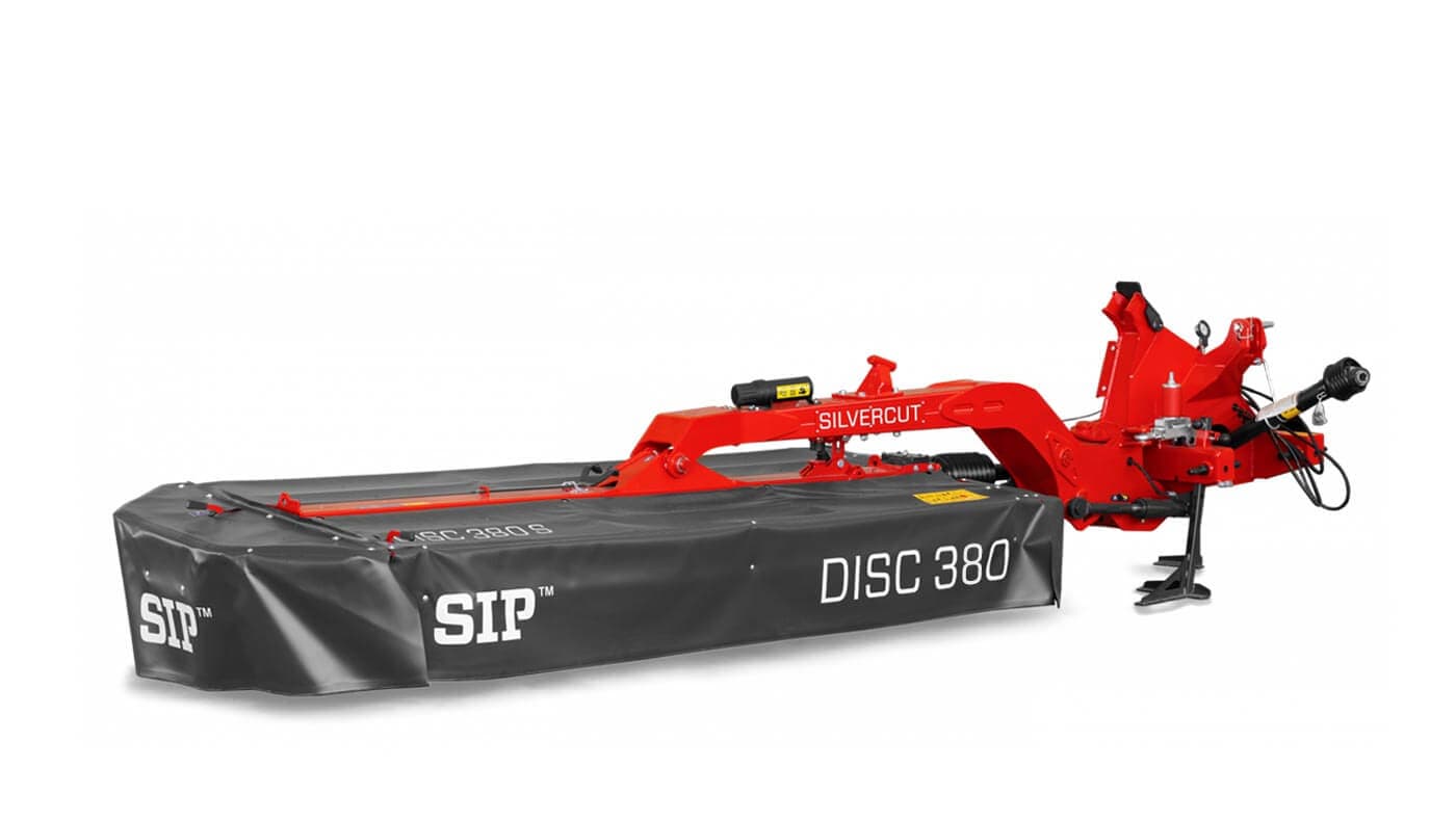 SIP Silvercut DISC 380 S er en bak og sidemontert skiveslåmaskin med et pendlende sentermontert bjelke- oppheng og hydro-pnaumatisk vektavlastning for pålitelig og effektiv drift.