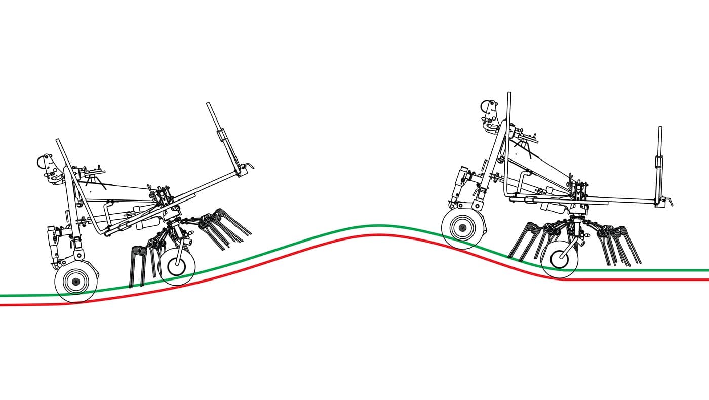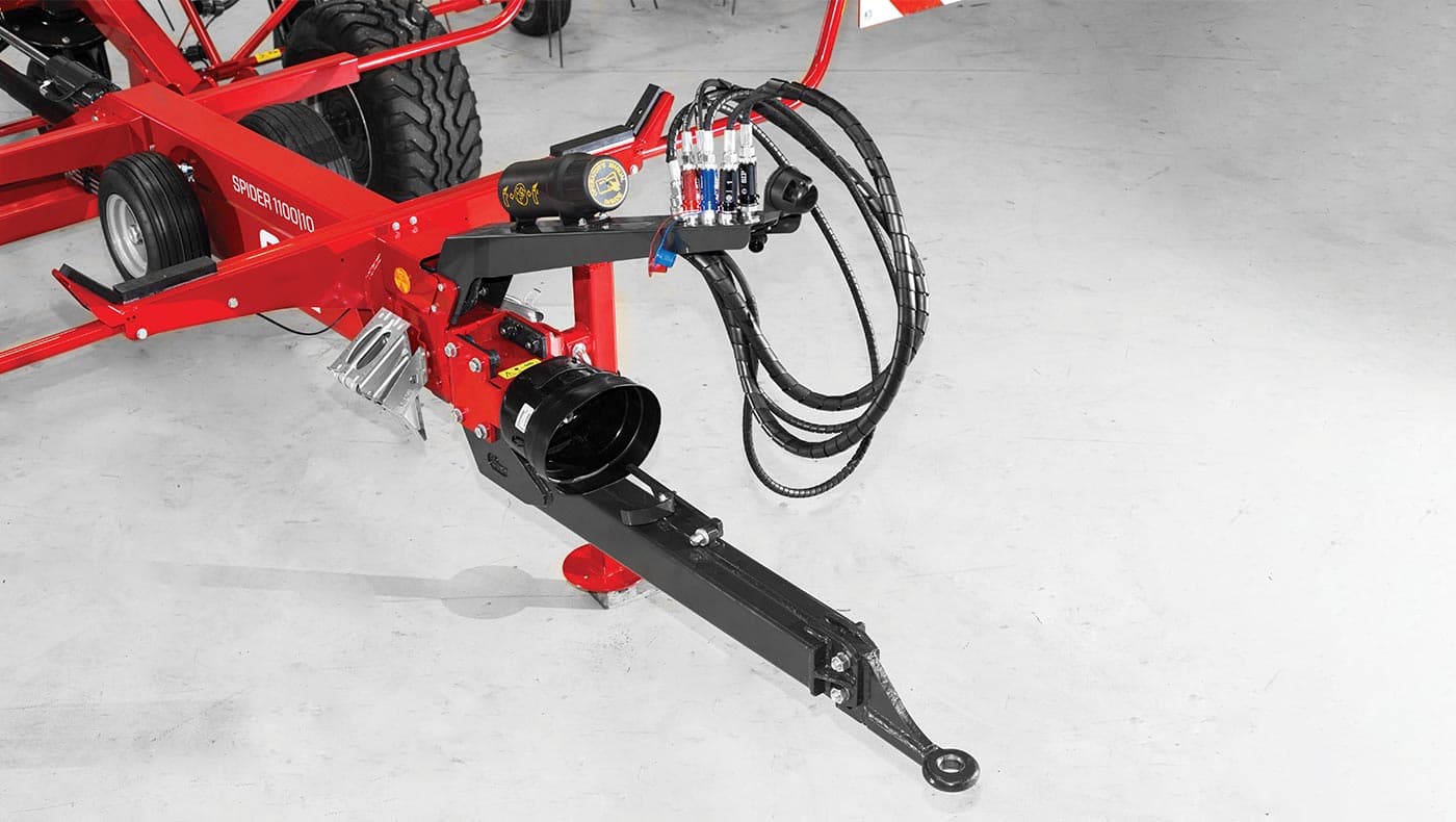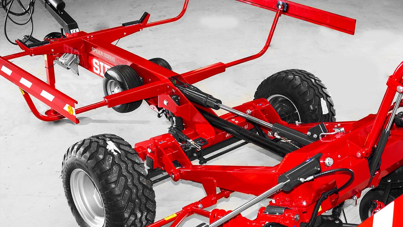 SPIDER 1100/10 T gir mulighet til å benytte en mindre traktor da transportramma bærer mye av rivas vekt under kjøring på vei og ved utfolding/sammenfolding.