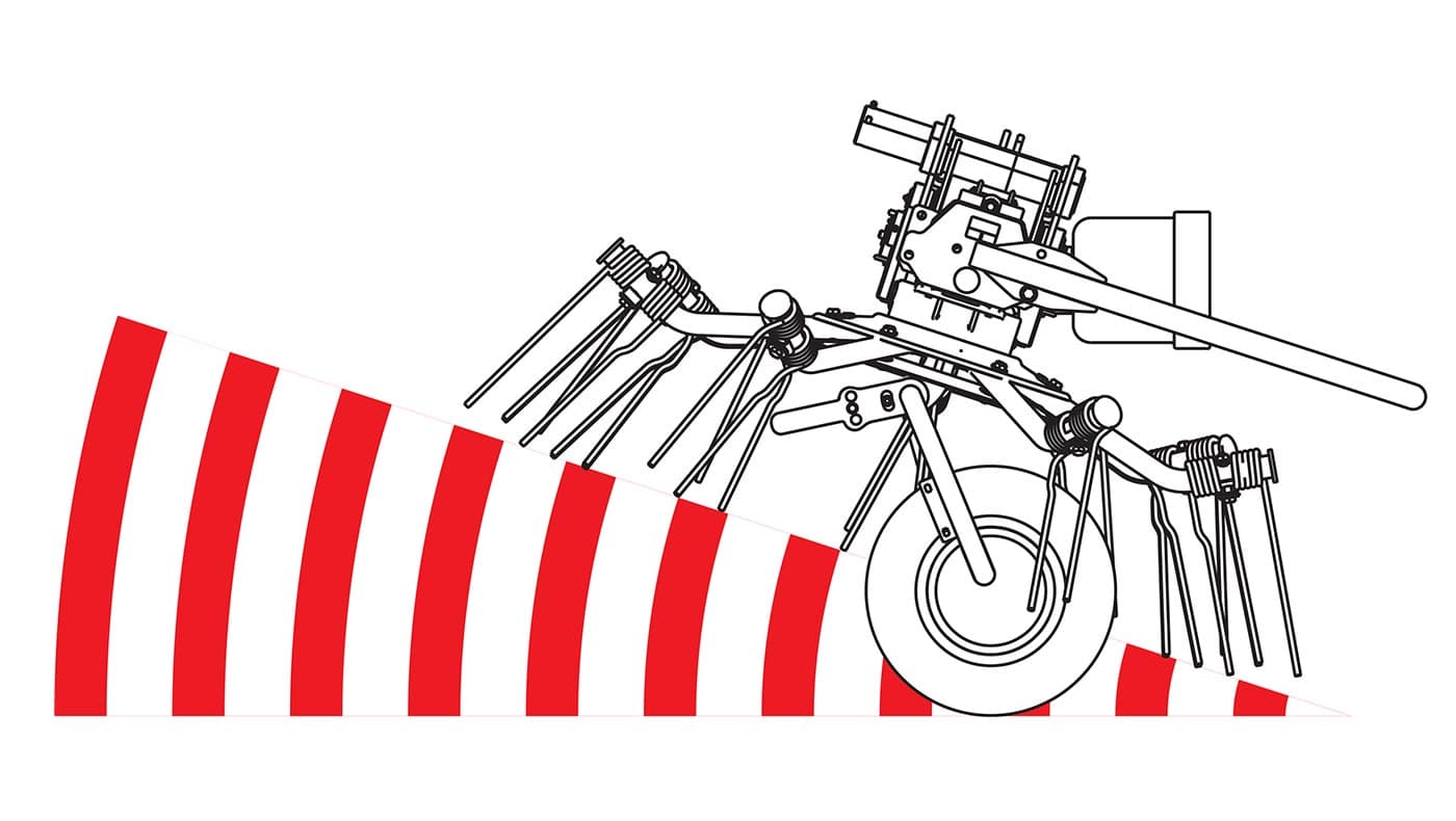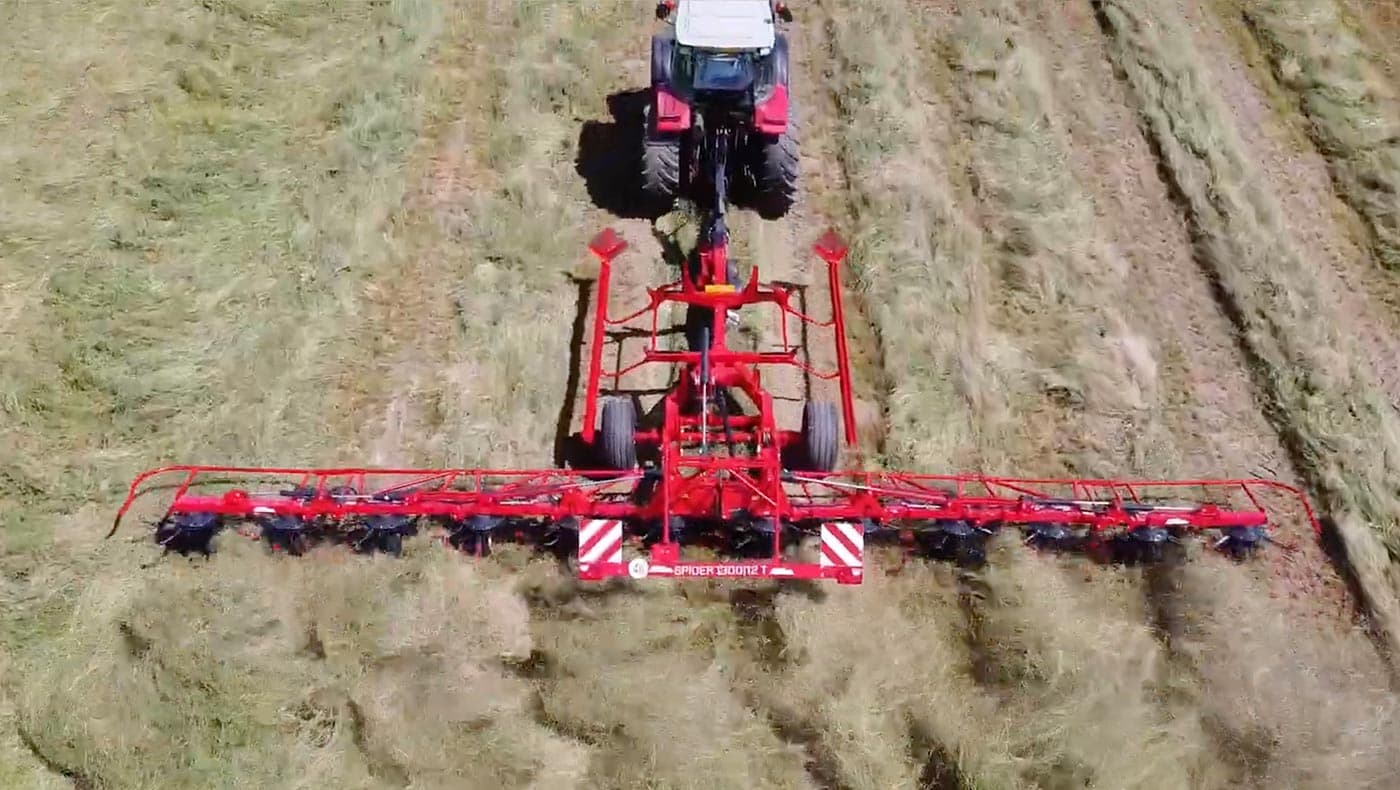 SPIDER 1300/12-T er en slept 12-rotors sprederive som er over standard på alle måter. Slitesterk og pålitelig konstruksjon, kombinert med rotorenes innovative design, sikrer jevn fôrspredning eller vending uten å skade gressmatta. Med stor arbeidsbredde gir den maksimal ytelse og energisparing.