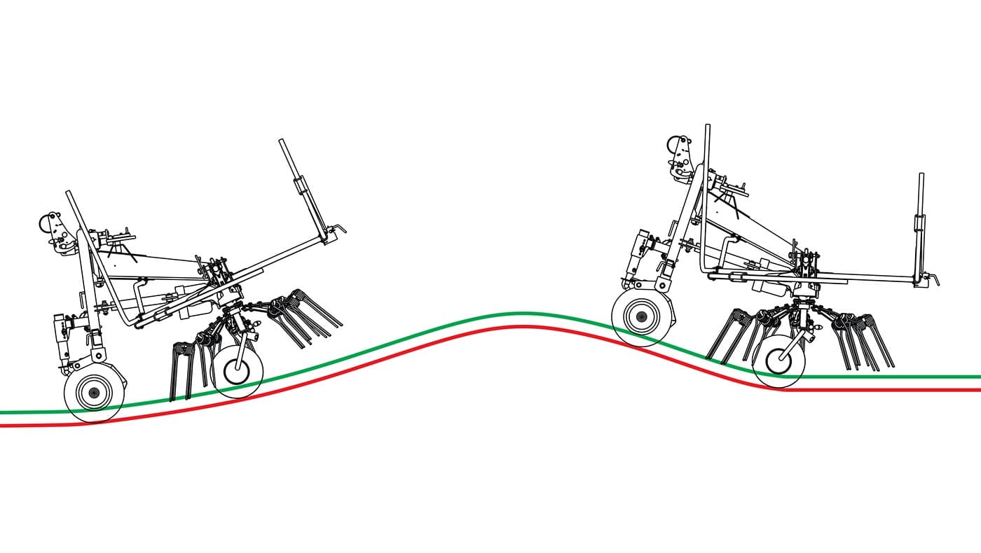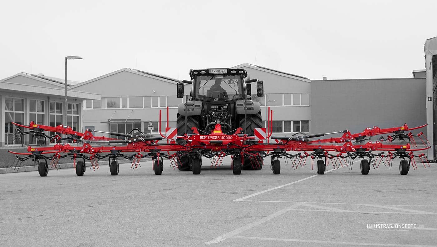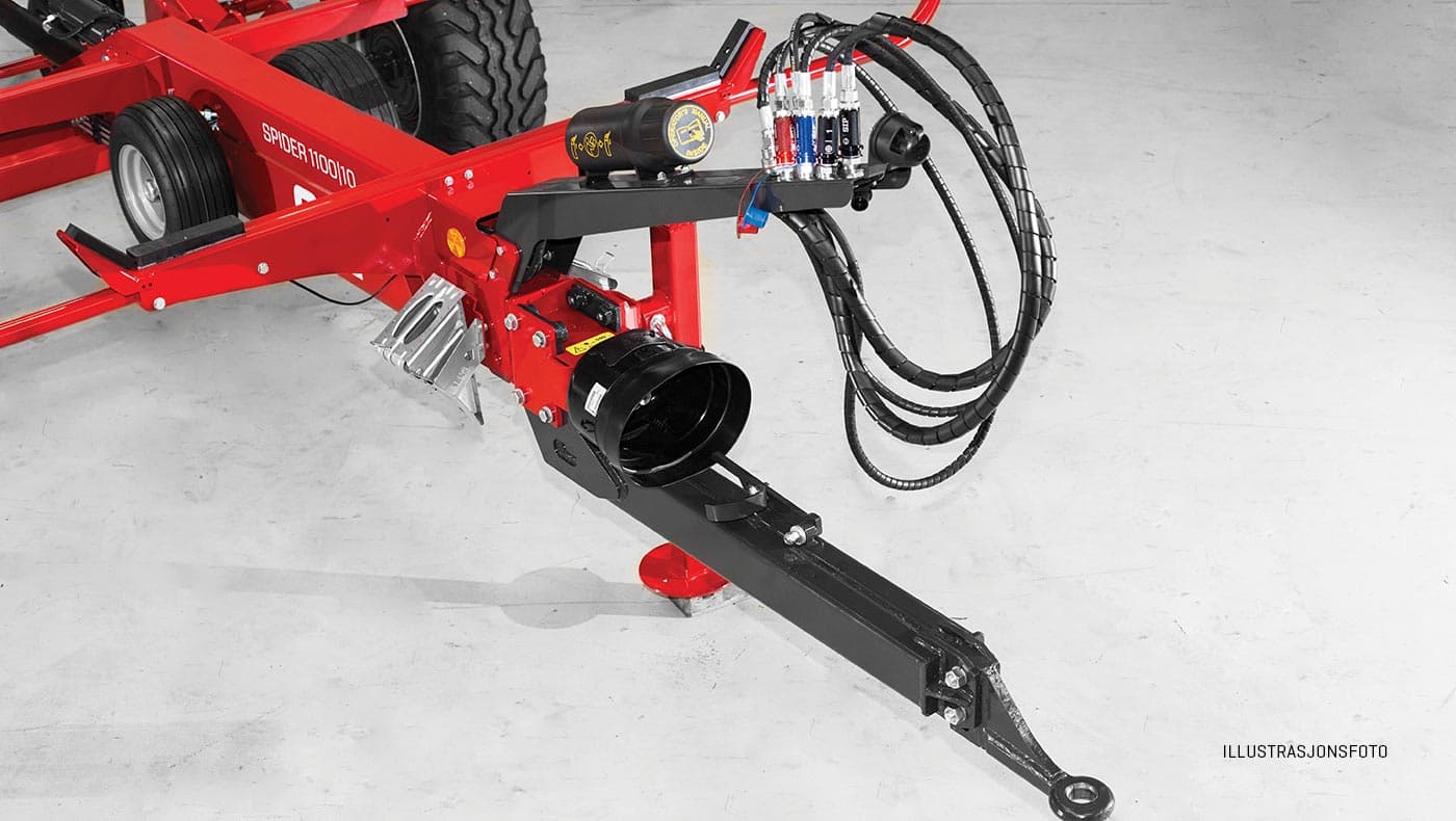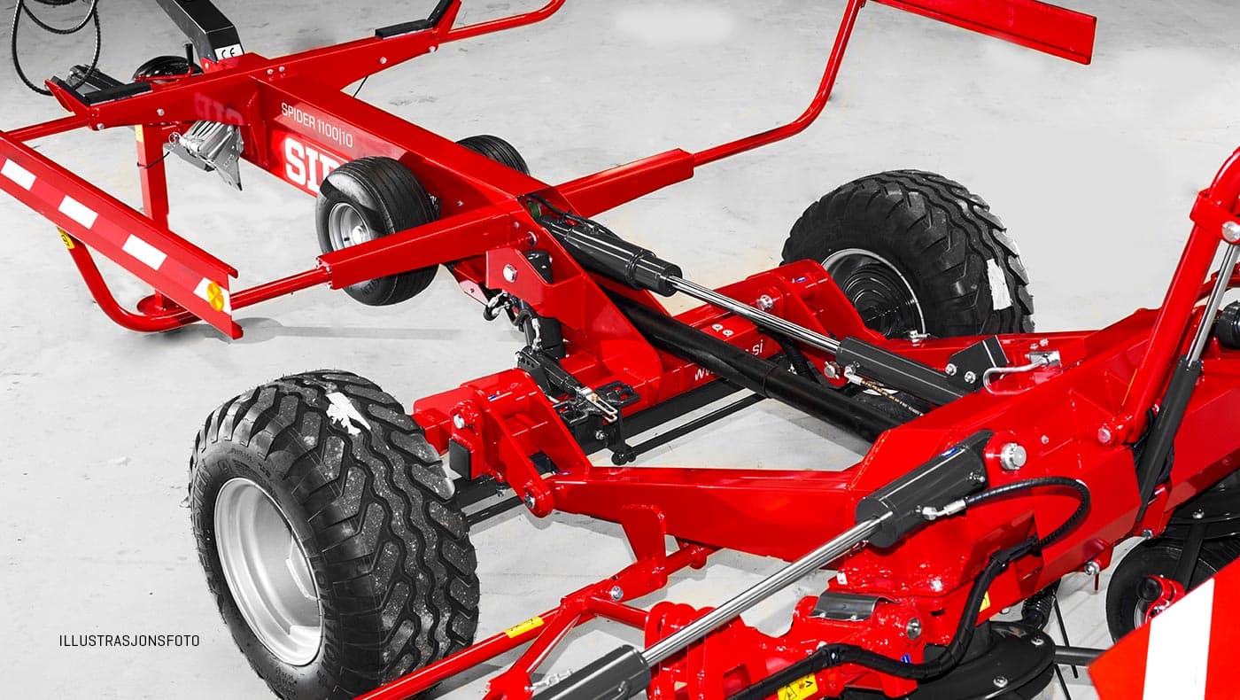SPIDER 900/8 T  gir mulighet til å benytte en mindre traktor da transportramma bærer mye av rivas vekt under kjøring på vei og ved utfolding/sammenfolding.