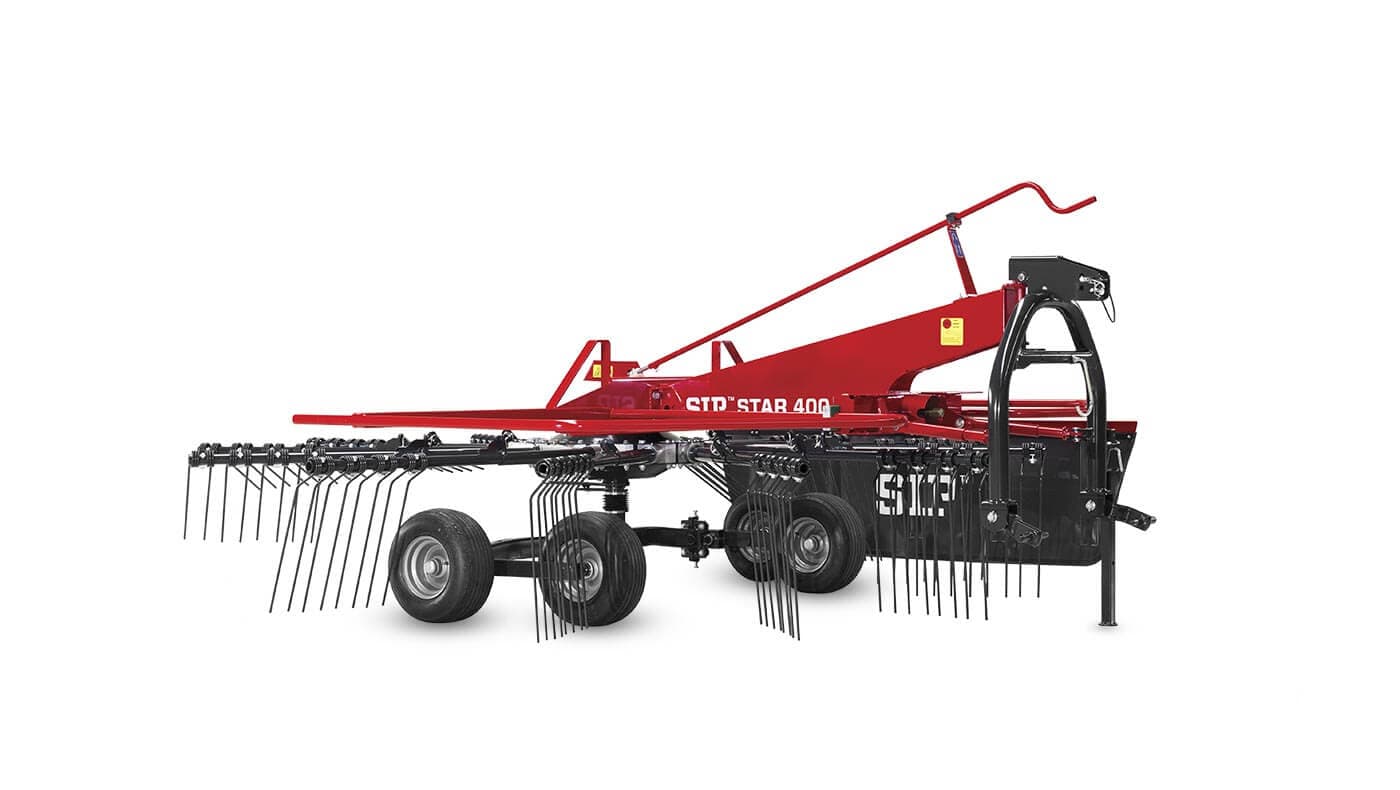SIP Star 400/11 er en 1-rotors-rive med gjennomtenkt konstruksjon og egenskaper som typisk finnes på de større 2-rotors-rivene. Modulære rotorer der armene kan skiftes enkeltvis, stor rotordiameter som krever mindre moment og kraft, justerbar eksenterbane som lar deg bestemme tindenes slipp-punkt og patenterte tandemaksler er eksempler på dette. De fire doble fjærtindene på holderen sørger for jevne og rene skår og med svingbar kobling er de ekstremt smidige, følger traktoren optimalt og har en liten snusirkel. De tilpasser seg perfekt til terreng og muliggjør profesjonell raking selv i ulendt terreng.