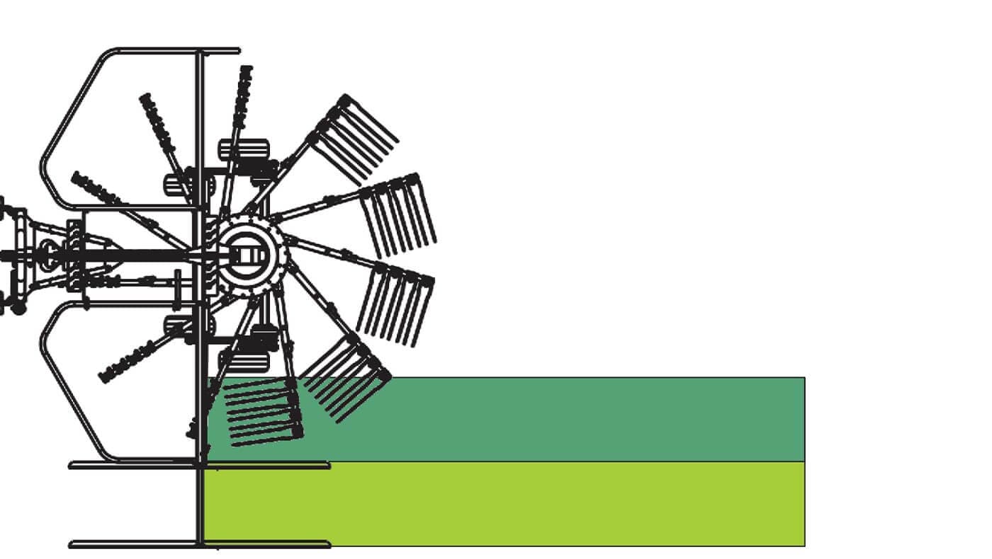 Spesiell 3D-montering tillater fri bevegelse av rotorene og sikrer fullstendig bakkesporing. De kryssformede hengslene på rotorene muliggjør perfekt 3D bakkesporing uavhengig av chassiset. Fjærtindene holder seg alltid parallelt med bakken, noe som sikrer rene skår selv ved høyere arbeidshastigheter.